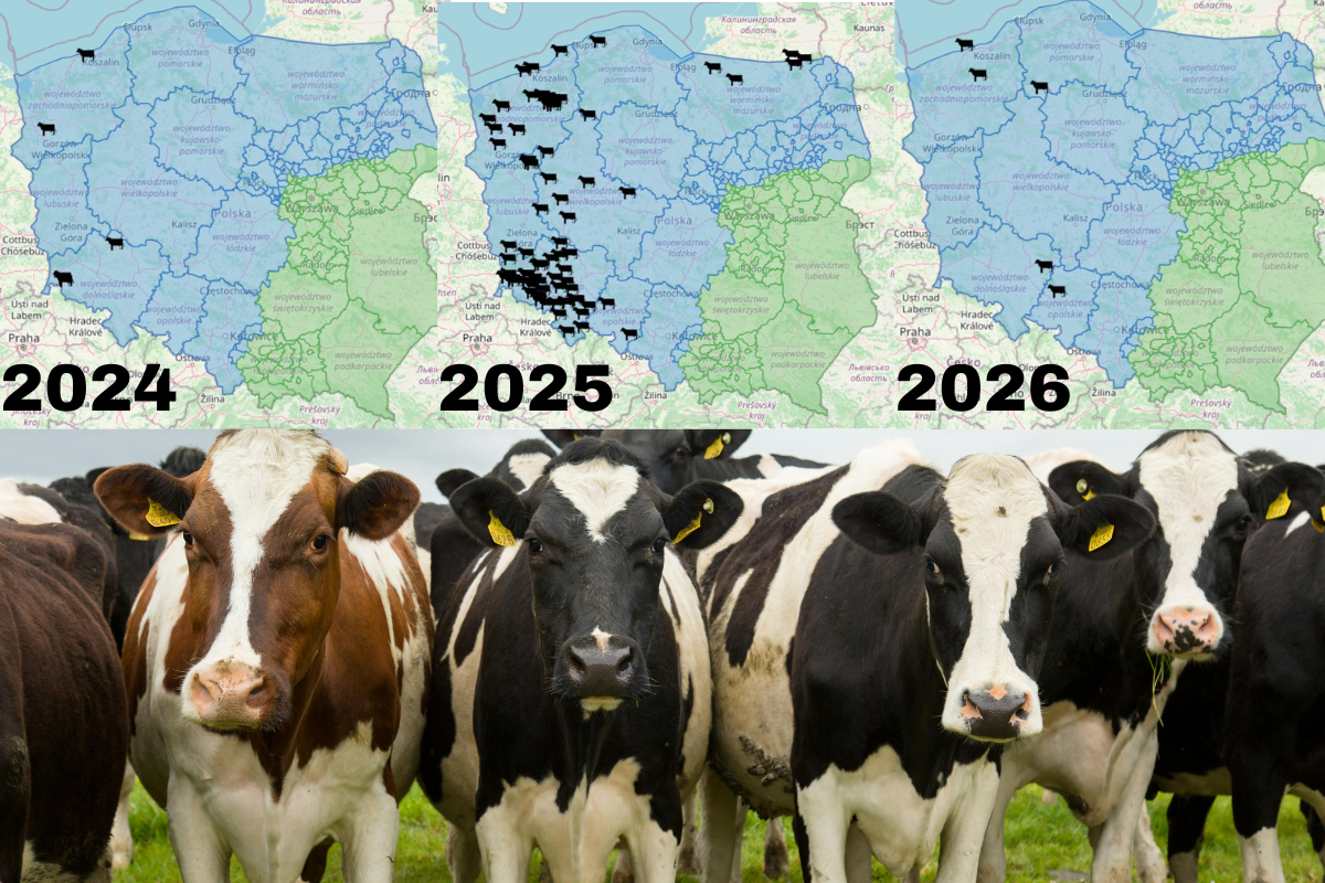 Choroba niebieskiego języka po raz pierwszy została wykryta w Polsce w 2024 r., wówczas wyznaczono 7 ognisk, w 2025 r. 81 ognisk, a w tym roku 5 ognisk - w woj. pomorskim, zachodniopomorskim, opolskim i dolnośląskim. Wraz ze wzrostem temperatury i pojawieniem się kuczmanów ryzyko zakażenia rośnie. Wektorem wirusa są kuczmany - owady kłująco-ssące, ale również krew oraz nasienie. Na chorobę podatne jest bydło, kozy oraz owce.