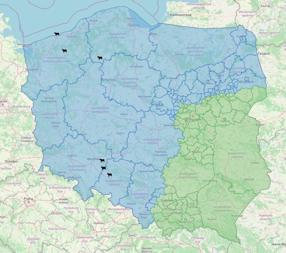 Oznacza to, że zmianie ulegają zasady zezwoleń na przemieszczanie z Państw Członkowskich do stref w Polsce. Można przemieszczać zwierzęta niezależnie od wieku, które: