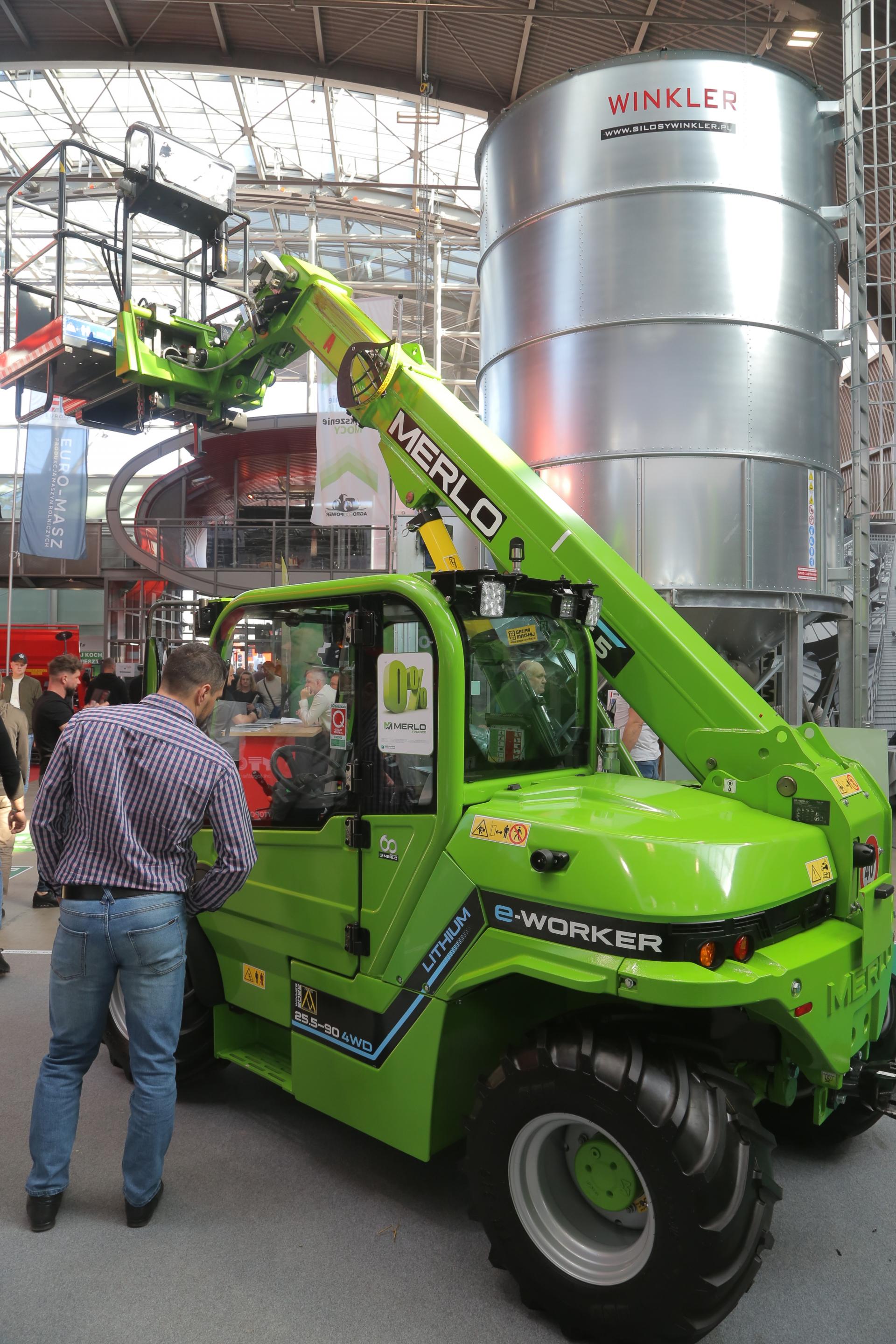 Firma Merlo prezentuje nowy model elektrycznej ładowarki teleskopowej eWorker 25.5-90, wyposażonej w baterię litową oraz platformę roboczą. Model ten wyróżnia możliwość jazdy i sterowania ładowarką bezpośrednio z platformy. Funkcja ta jest niezwykle przydatna, ponieważ umożliwia przesunięcie maszyny podczas pracy bez konieczności opuszczania platformy, co oznacza, że nie jest konieczne sterowanie maszyną z pozycji operatora w kabinie.