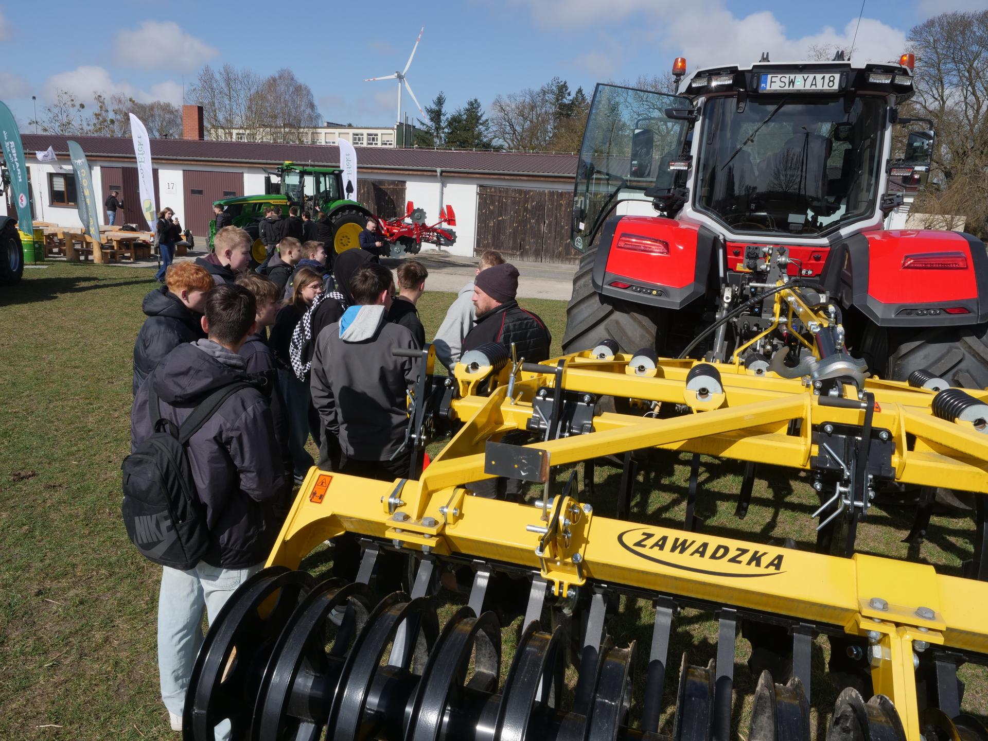 Pięć stanowisk dydaktycznych z dużą dawka praktycznej wiedzy czekało pierwszego dnia kwietnia na uczniów trzcianeckiej szkoły rolniczej. Swoje maszyny zaprezentowały firmy Agro-Efekt (ciągnik John Deere z agregatem talerzowym Unia oraz ładowarka teleskopowa Kramer), Zawadzka (ciągnik Massey Ferguson z kultywatorem Bednar) oraz Complex – specjalizująca się w zabiegach agrotechnicznych z wykorzystaniem dronów.