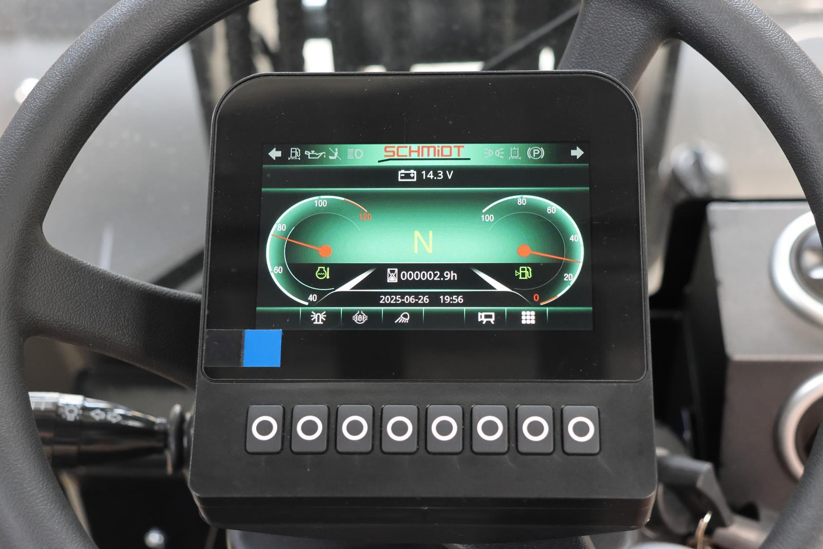 Wyświetlacz w kabinie operatota stanowi centralne źródło informacji o parametrach pracy i stanie technicznym ładowarki. Jego przejrzystość oraz intuicyjna obsługa mają bezpośredni wpływ na bezpieczeństwo, efektywność i komfort pracy operatora. Firma Schmidt wprowadziła do sprzedaży ładowarki z wyświetlaczem umieszczonym w kierownicy.