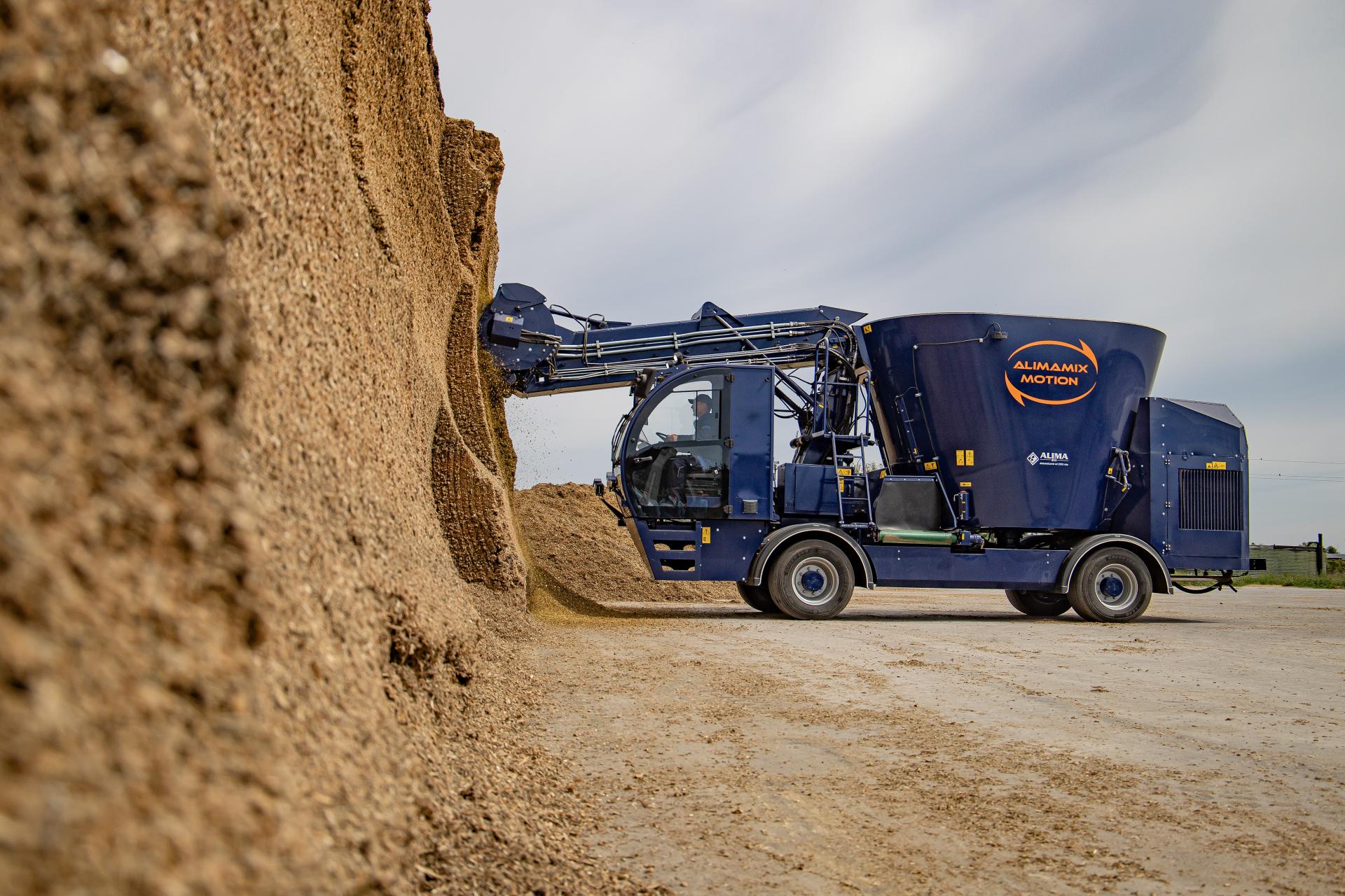 Alimamix Motion to jednoślimakowy wóz paszowy, napędzany silnikiem Volvo o mocy 175 KM wraz z układem DPF oraz z systemem ADBlue (Stage V), spełniającym najnowsze normy emisji spalin. Układ jezdny przenosi napęd na dwie osie, które dodatkowo są skrętne. Tryb pracy „psi chód” znacznie usprawnia manewrowość, a z kolei tryb „krab” jest przydatny podczas pracy przy silosach. Dwie osie skrętne pozwalają na uzyskanie średnicy zawracania wynoszącej zaledwie 12,5 m.