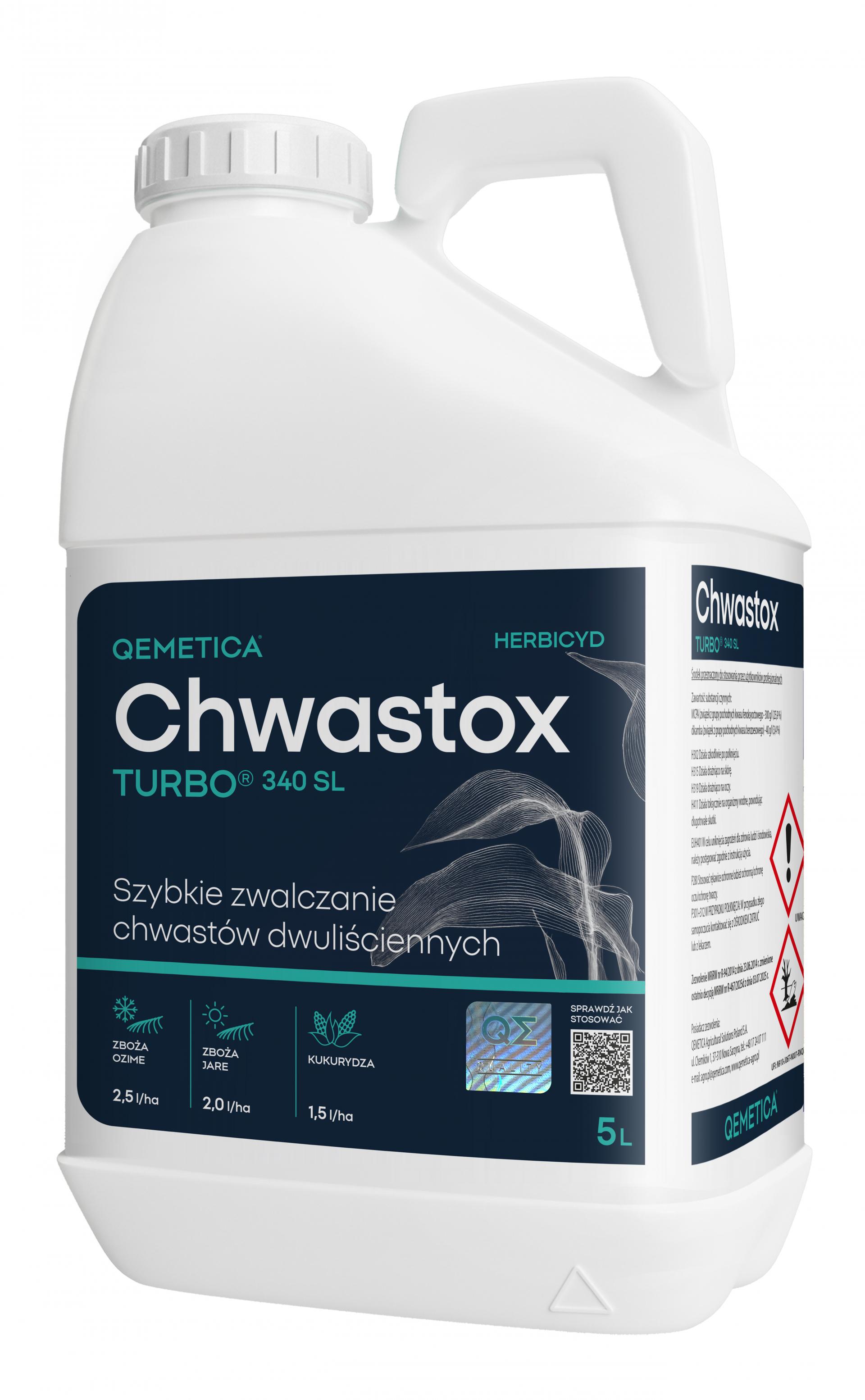 - CHWASTOX TURBO® 340 SL – wiodący herbicyd na chwasty dwuliścienne w zbożach ozimych, jarych oraz kukurydzy. Zawiera MCPA i dikambę – syntetyczne auksyny działające systemicznie, które docierają do stożków wzrostu chwastów, zatrzymując ich rozwój. Jest to najbardziej rozpoznawalny, zbożowy herbicyd wiosenny.