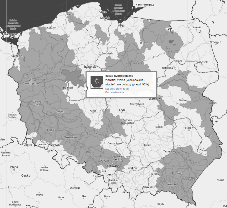 Według ostatniego raportu susza hydrologiczna obejmuje niemal połowę kraju (patrz mapa). Mając na uwadze, że głównym konsumentem wody w kraju jest przemysł i rolnictwo, działy te muszą w pierwszej kolejności weryfikować te dane, gdyż ograniczenia w dostępie dotkną je w pierwszej kolejności.