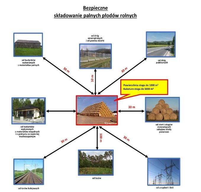 Częstym błędem, który popełniany jest przez rolników jest nieprawidłowe ustawienie stert, stogów czy borgów. Gospodarze nie zachowują odpowiednich odległości od: