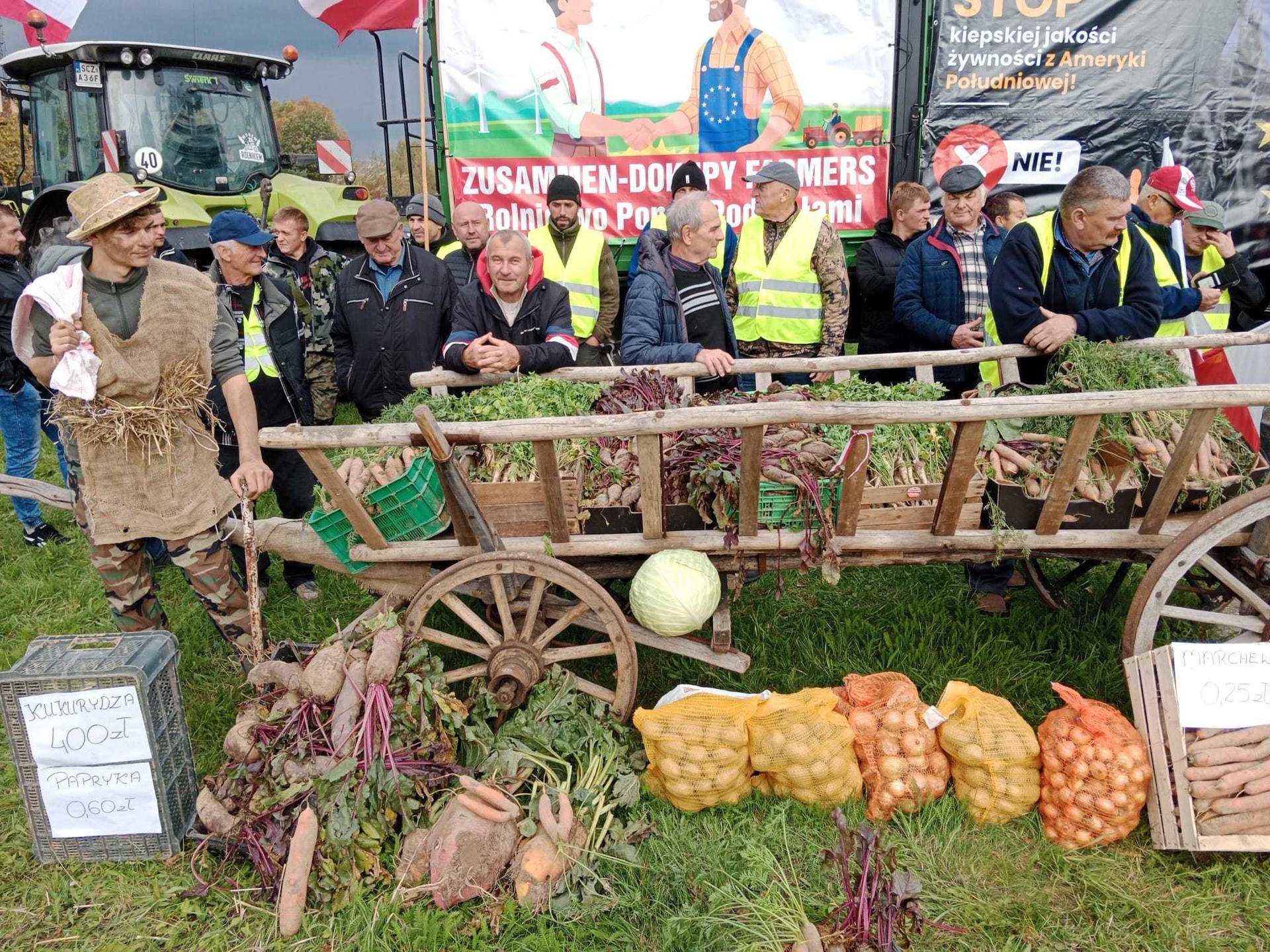 – Protestujemy przeciwko temu, co wszystkie pozostałe grupy rolnicze w naszym kraju. Solidarnie z innymi rolnikami walczymy o naszą przyszłość, o rozwiązania, które muszą wejść w życie. Bez nich wiadomo, co się stanie. Wprowadzenie pozwolenia na handel wszystkim, co ktoś nam sprzeda z Mercosuru czy Ukrainy, jest gwoździem do naszej rolniczej trumny – mówił Rafał Poloczek, uczestnik protestu.