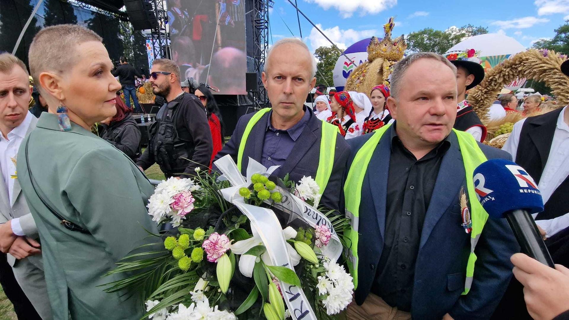 Głos zabrał też przedstawiciel rolników z Pomorza, który zwrócił uwagę, że dzisiejsze dożynki to pogrzeb polskiego rolnictwa. – Rolnictwo umiera, dlatego mamy tutaj pogrzeb polskiego rolnictwa. To nie jest zabawa, tylko krzyk rozpaczy. My produkujemy zdrową żywność, mamy rodziny na wsi i w mieście, a mimo to kapitał zagraniczny zalewa nasz rynek. Dziś pada rolnictwo, jutro padnie przemysł i cała gospodarka. Kto wtedy utrzyma nasze emerytury? – mówił rolnik, który też przyjechał z wieńcem. - Może minister chociaż spojrzy na ten wieniec i zrozumie, co się dzieje na polskiej wsi - podkreślił.
