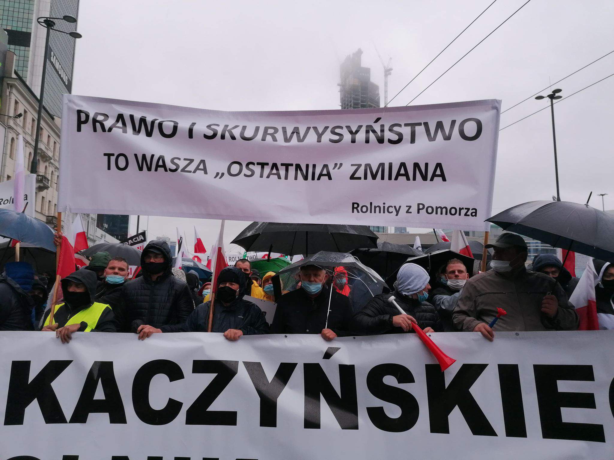 Przemawia Michał Kołodziejczak. Apelował o spokojny protest bez używania pirotechniki. Stanowczo prosił też wszystkich uczestników o założenie maseczek, by nie stwarzać zagrożenia epidemicznego i nie prowokować policji do interwencji.