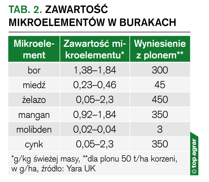 Burak cukrowy ma dużą powierzchnię liści, więc może przez nie sprawnie pobrać składniki, nie tylko mikroelementy. Buraki w porównaniu np. ze zbożami wykazują kilkakrotnie większe zapotrzebowanie na mikroelementy, a w przypadku najważniejszego dla nich boru nawet kilkunastokrotne.