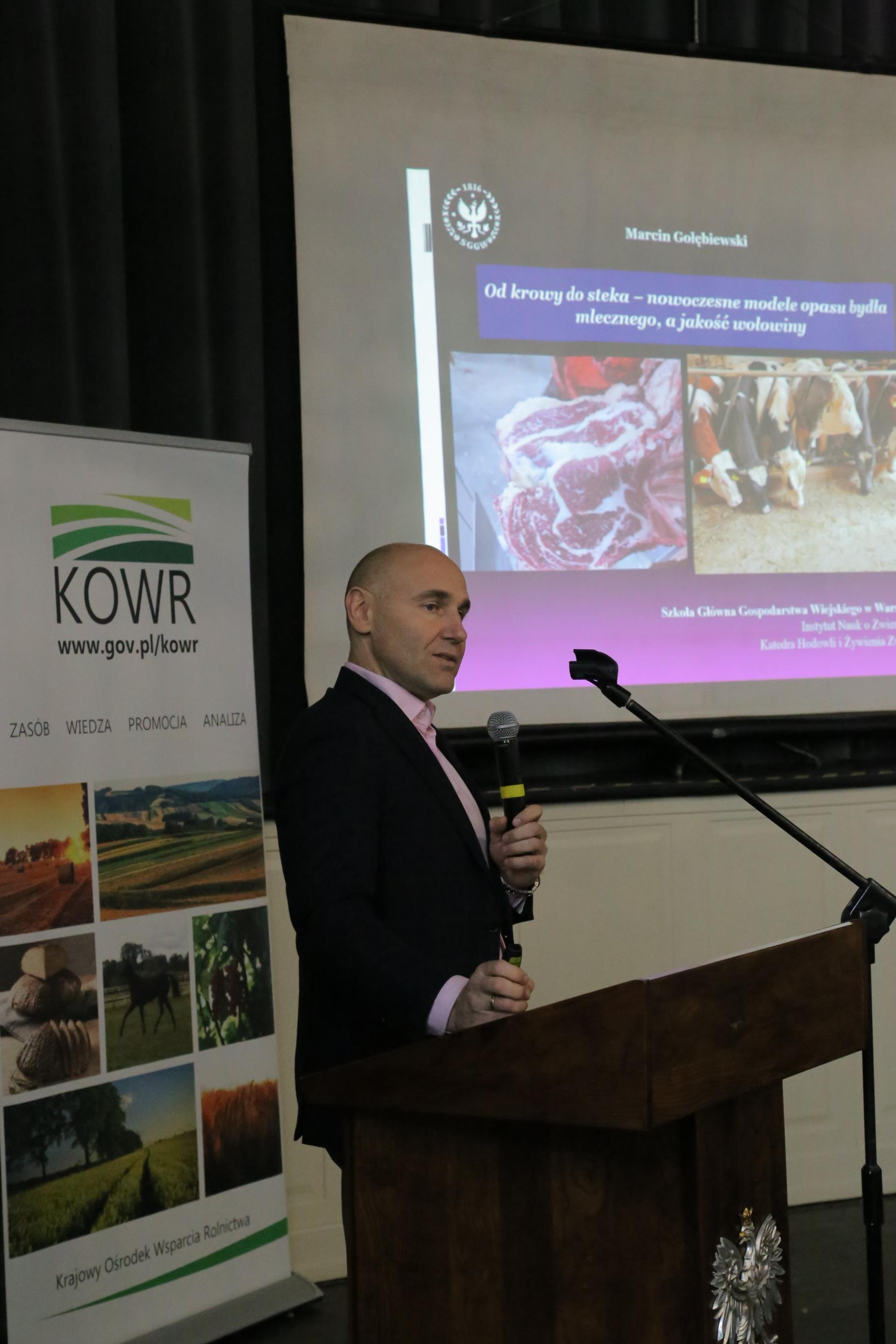 Profesor Marcin Gołębiewski z SGGW w Warszawie przedstawił schematy, dzięki którym produkcja wołowiny z ras mlecznych będzie również ekonomiczna i wysokiej jakości. Na przykładzie ze Stanów Zjednoczonych ekspert przedstawił możliwość zwiększenia dochodów z pozyskiwanych cieląt. W obecnej sytuacji rynkowej - spadające ceny mleka i dość drogie w zakupie cielęta do opasu. Dobrym sposobem na zwiększenie opłacalności produkcji, w przypadku ograniczania pogłowia w stadzie może być krycie krów rasami mięsnymi. Cielęta takie są zdecydowanie droższe w sprzedaży.