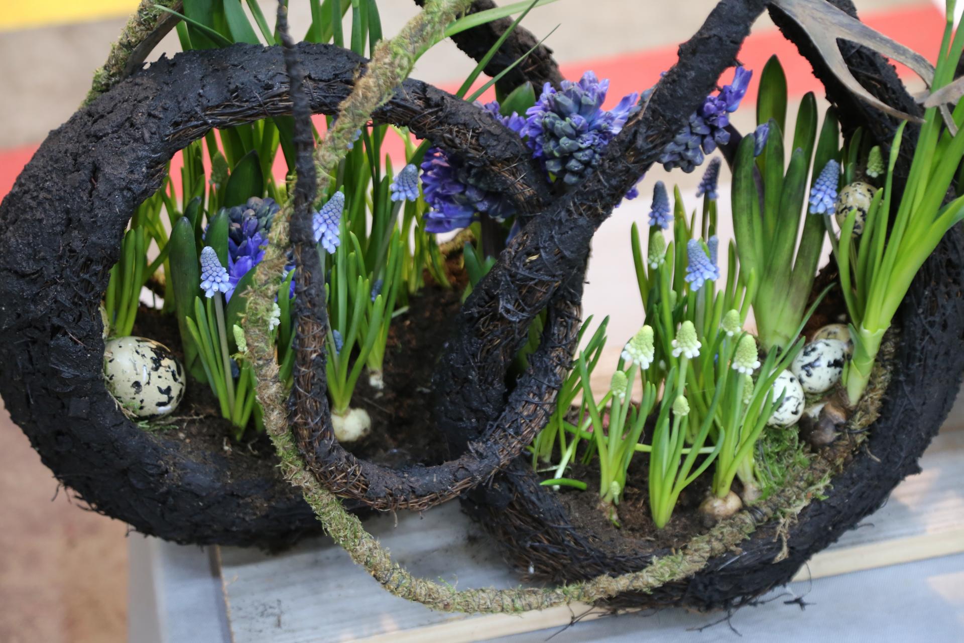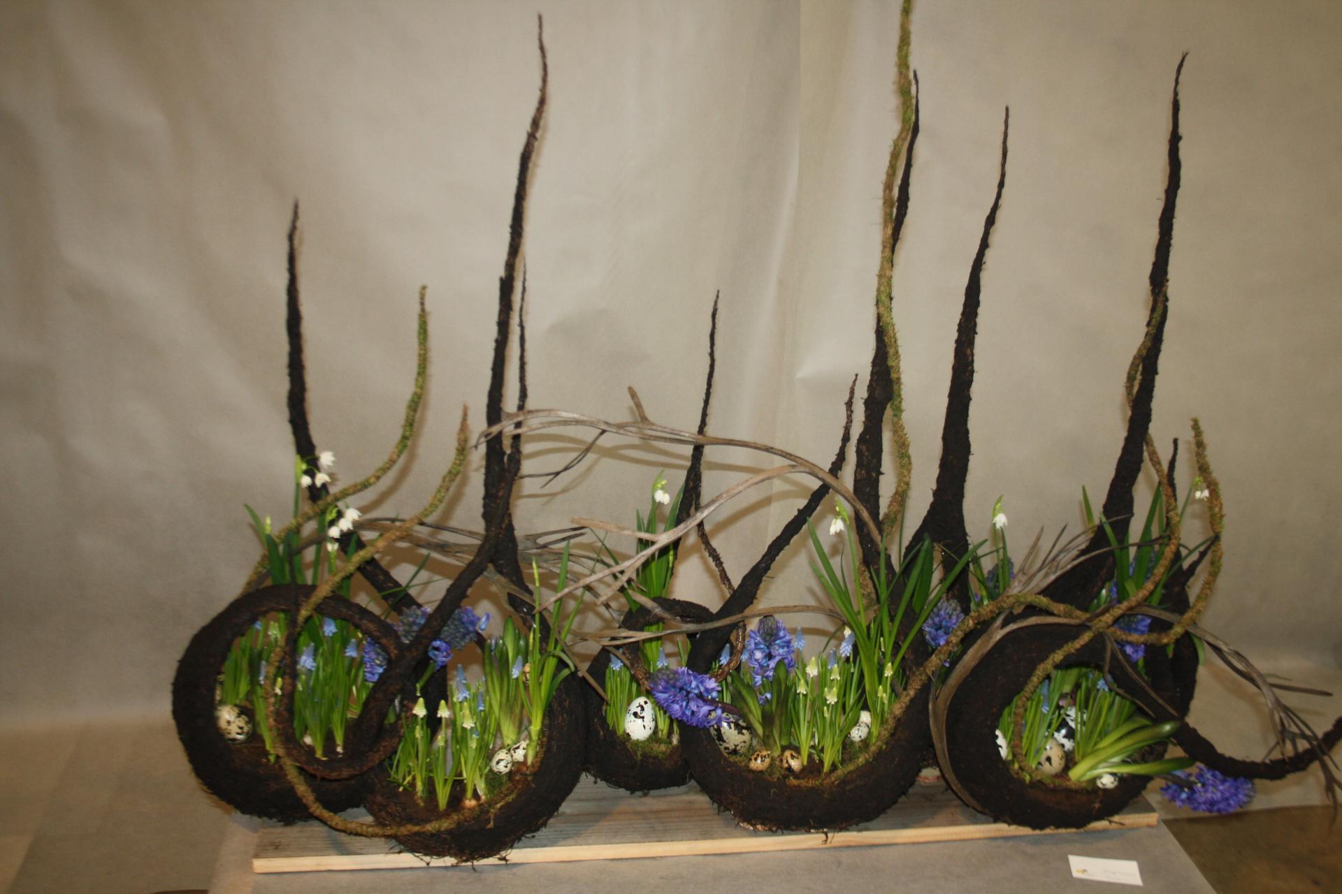 Symboliczna koncepcja „obietnica życia” – rośliny kiełkują, przebijając się przez ziemię. Nowe życie wyrasta ze zmarzniętej ziemi. Tomasz Max Kuczyński sugestywnie wykorzystał ziemię zmieszaną z klejem, otaczając nią kosze wiklinowe przedłużone faszyną oraz witkami z siana i mchu owiniętych drutem. Ziemia wypełnia też koszyki. Wyrastają z niej hiacynty, szafirki (niebieskie i białe) i śnieżyce oraz wychylają się symbole nowego życia – jajka. Ciekawym elementem jest też paproć płaskla (łosie rogi).