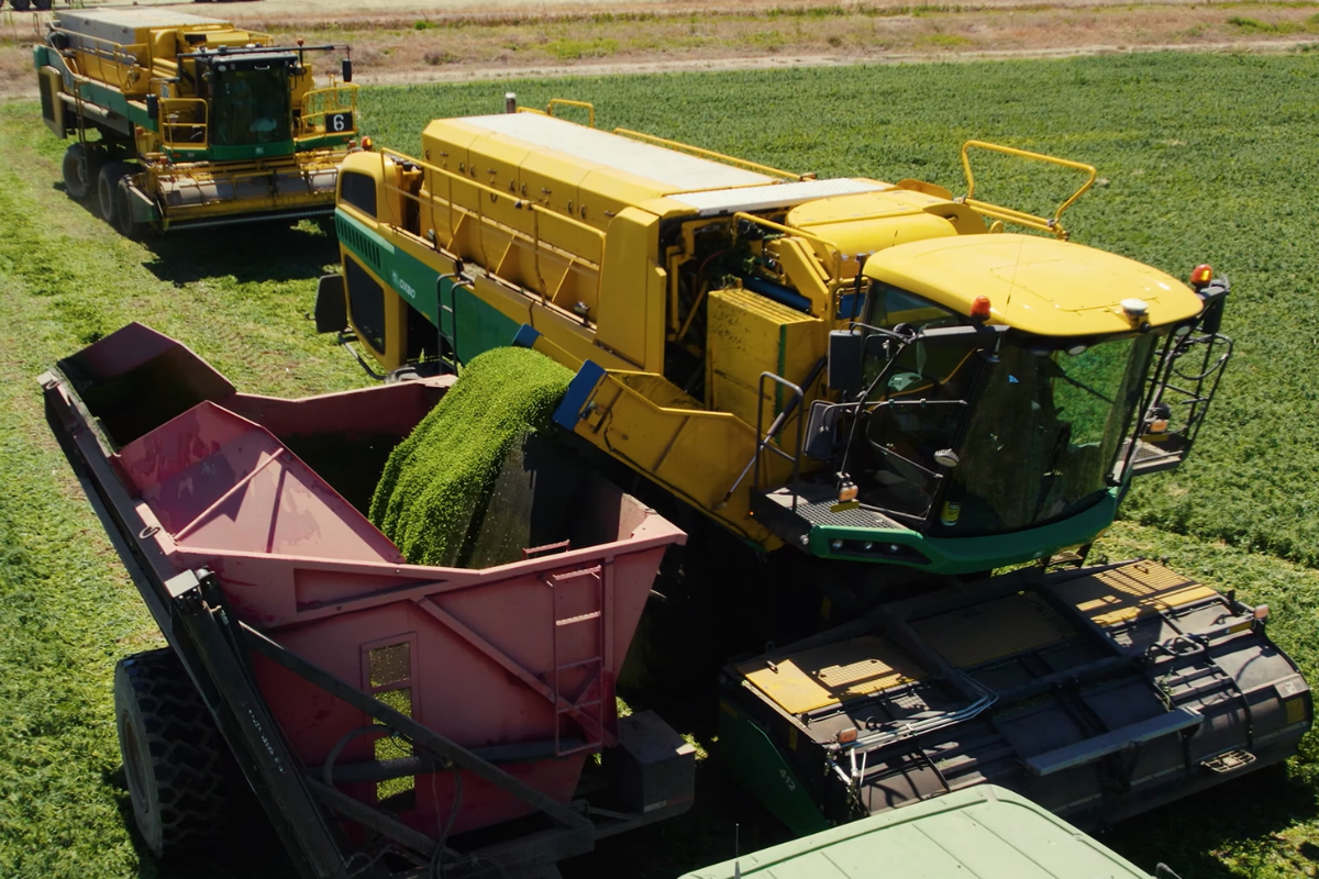 Choć GP6300 to maszyna ważąca 26 t, jej konstrukcja została podporządkowana zbiorowi delikatnego zielonego groszku, który wymaga stabilnej pracy i równomiernego prowadzenia zespołów roboczych.