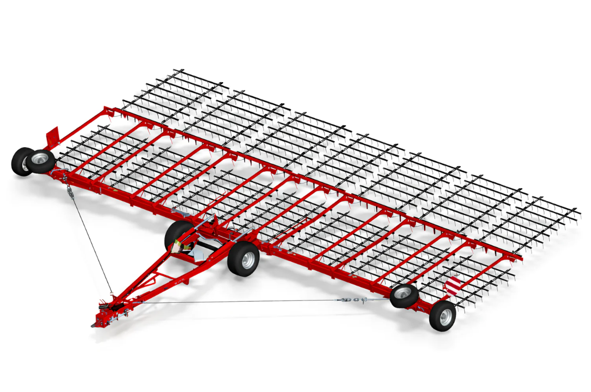To maszyna ciągniona, typowo pod: gospodarstwa wielkoobszarowe, szybkie wyrównanie i pielęgnację gleby.
