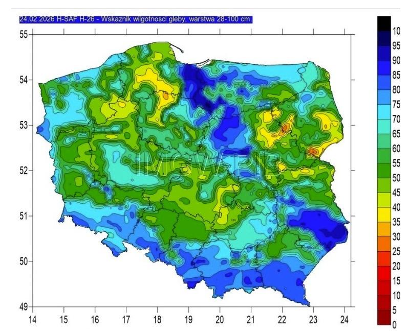 Biorąc pod uwagę dane z powyższej mapy, trzeba mieć nadzieję, że temperatura gleby się podniesie i woda będzie miała szansę wsiąknąć, a nie spłynąć. Na ten moment wierzchnia warta jest bardzo mocno wysycona wodą, ale jeżeli ten stan potrwa dłużej, może doprowadzić to do zagrożenia plantacji, a rośliny mogą ulec uduszeniu.