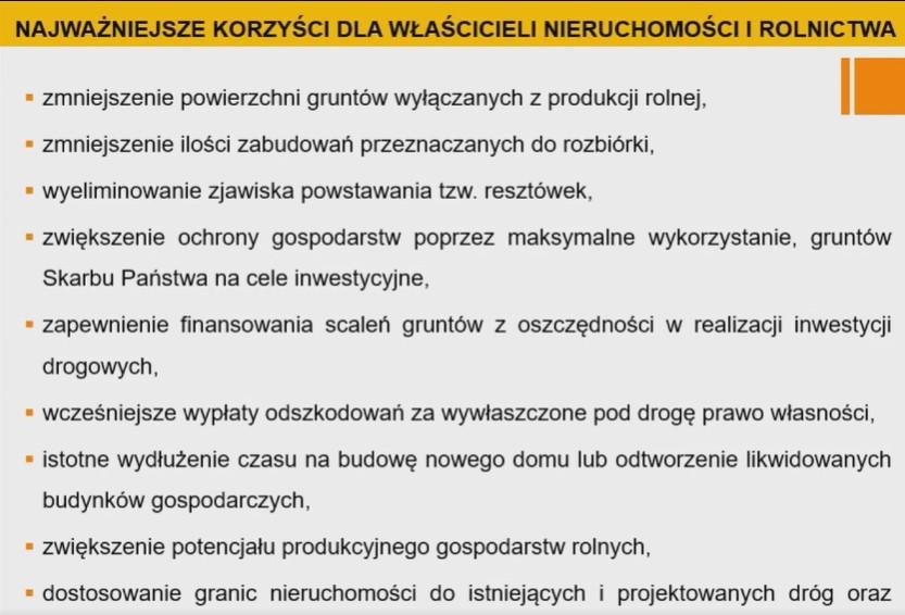 – To są elementy, które de facto są zbędne w ramach inwestycji drogowej, budowy drogi ekspresowej i które właśnie można wyeliminować poprzez postępowania scaleniowe – tłumaczył.