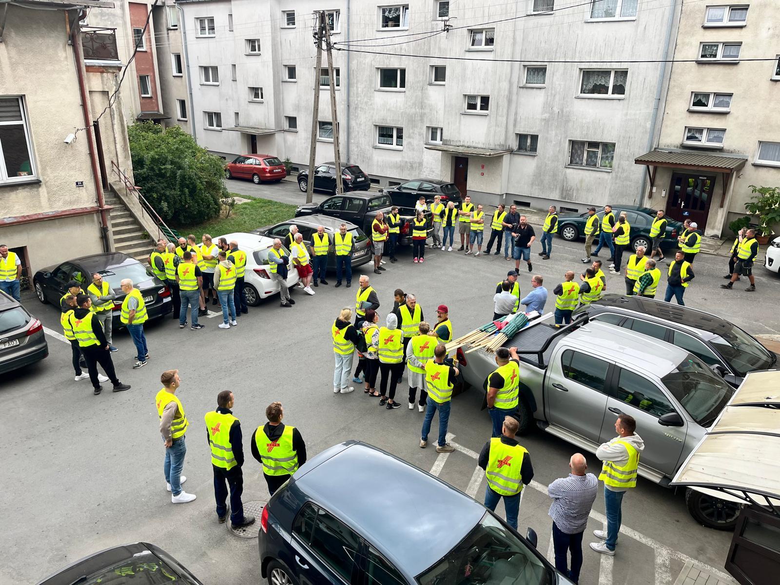 Przed budynkiem internatu zgromadzili się pracownicy Top Farms Głubczyce