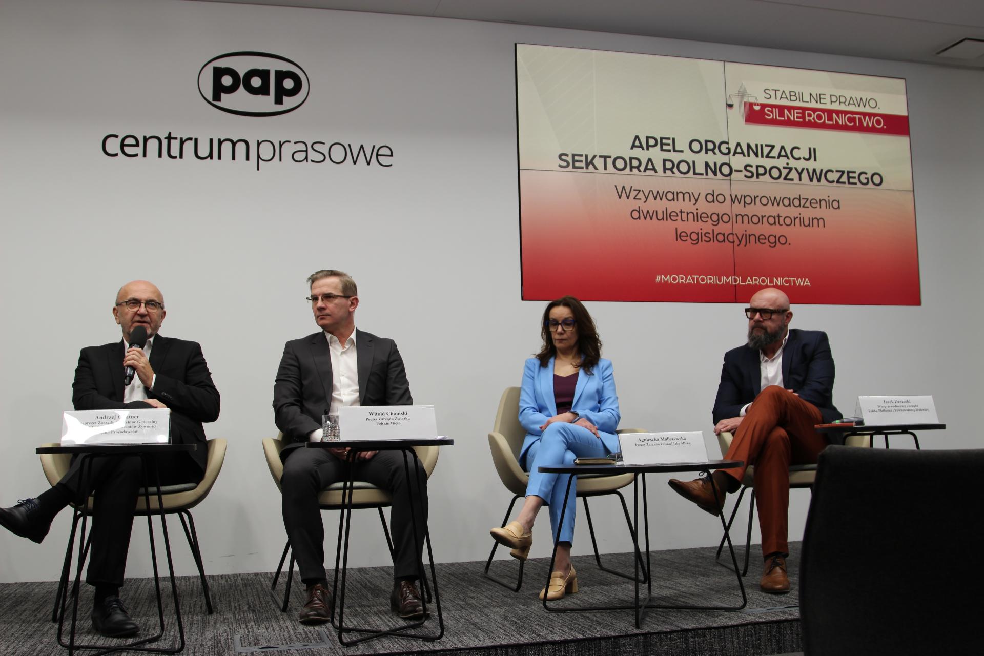 Przedstawiciele organizacji branżowych podczas poniedziałkowej konferencji prasowej w Warszawie wezwali władze do wprowadzenia dwuletniego moratorium legislacyjnego na nowe ustawy i rozporządzenia, które zwiększają koszty działalności sektora rolno-spożywczego. Apel podpisało już ponad 40 organizacji.