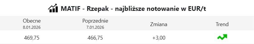 Pierwsze sygnały o dużych mrozach zbiegły się ze wzrostami notowań rzepaku na giełdzie MATIF. Styczeń zwykle owocuje kilkoma wzrostami kursów, bo następuje intensywna wymiana giełdowego portfela, przykład różnego wpływu popytu i podaży mogliśmy obserwować na MATIF np w środę, gdy przy takiej samej praktycznie ilości 11 tys. lotów na lutym i maju, lutowe kontrakty przy wiekszej chęci odkupu zredukowały ceny zaledwie o 25 eurocentów, a majowe pod wpływem większej podaży staniały aż o 2,25 €/t.