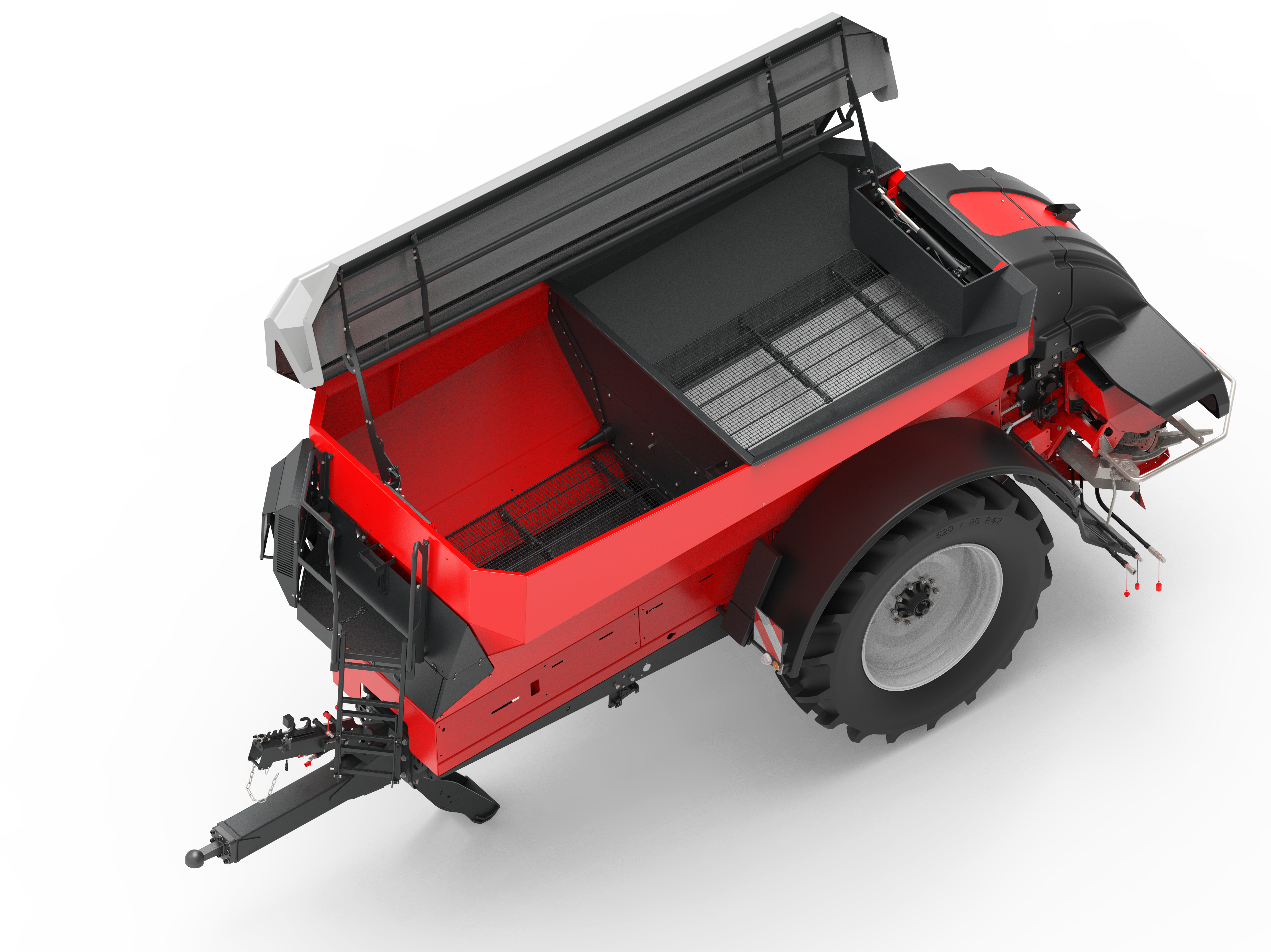 Zanim nawozy trafią na tarcze, kierowane są do specjalnego zbiornika o pojemności zaledwie 10 l, gdzie są mieszane. Aby uzyskać idealny rozkład poprzeczny, nawozy powinny mieć zbliżone właściwości fizyczne. Gdy praca odbywa się z mapami aplikacyjnymi i znacząco rośnie udział jednego z nawozów, układ automatycznie reguluje punkt podawania nawozu na tarcze, tak aby uzyskać jak najdokładniejszy rozkład poprzeczny.