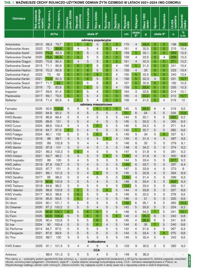 WW 2025 roku zarejestrowano siedem nowych odmian mieszańcowych (Farmaleo, KWS Britor, KWS Valnentor, SU Einar, SU Fenn, SU Fergusson, KWS Erebor – krótkosłoma) oraz jedną populacyjną odmianę Dańkowskie Chantal, a także trzy odmiany, które są składnikami odmian mieszańcowych.