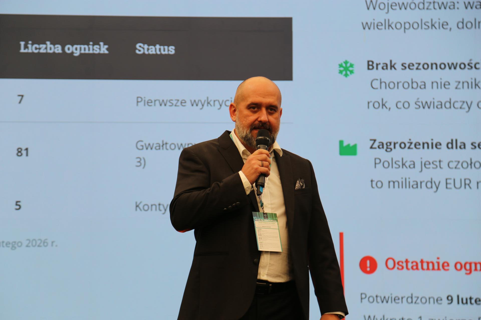 Prelegent zaznaczył, że choroba nie stanowi zagrożenia dla ludzi ani dla bezpieczeństwa żywności pochodzenia zwierzęcego.
