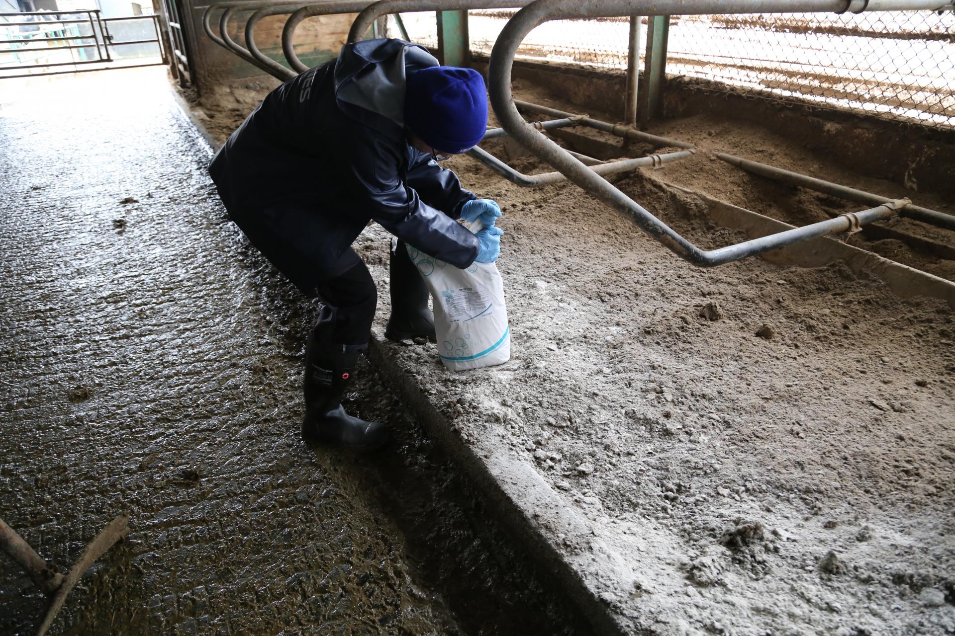 Do dezynfekcji stosuje się wapno hydratyzowane [Ca(OH)2], węglan wapnia (CaCO3) oraz specjalne preparaty, najczęściej zawierające tosylochloramid sodu (chloraminę T) w stężeniu 0,2–0,3 g/100 g produktu. Producent zazwyczaj zaleca dawkę 50–100 g/m², aplikowaną 1–2 razy w tygodniu. W przypadku stosowania wapna hydratyzowanego lub węglanu dawka powinna wynosić ok. 150 g/m². Przy legowiskach z separatem dla lepszego efektu można nieznacznie zwiększyć dawkę, szczególnie w przypadku węglanu. Wapno hydratyzowane jest pyliste i może podrażniać drogi oddechowe, dlatego należy je rozsypywać ostrożnie. Niezależnie od stosowanego środka, dezynfekcję należy przeprowadzać zawsze na czystym podłożu, bez odchodów.