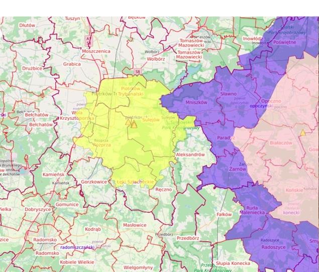 W załączniku do rozporządzenia wskazany jest obszar strefy objętej zakażeniem, która w powiecie piotrkowskim obejmuje miasto Piotrków Trybunalski oraz sześć gmin: