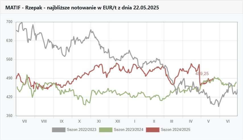 Zdaniem rolników zimny maj, w połączeniu z nawet niezbyt dużymi, ale jednak mającymi miejsce opadami, powoduje że zbiory rzepaku w kraju zaczynają się przesuwać. A to wydłuża stary sezon. Więcej dni, zanim nastąpią dostawy w ilościach gwarantujących z ruszeniem z produkcją, przy niewielkich zasobach surowca ze zbiorów 2024 r. przynosi bowiem konieczność konsumpcji zgromadzonych zapasów niemal do zera.