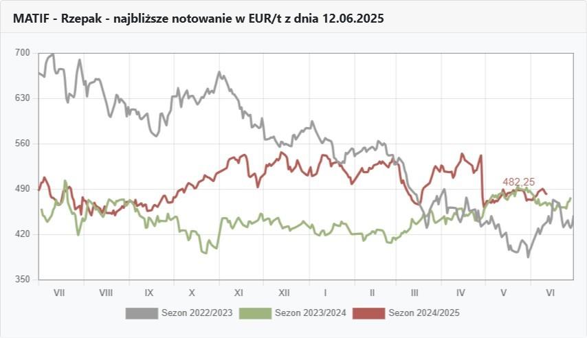 Niestety powszechnie będziemy jednak w porównaniach rynkowych widzieć spadające ceny, bo więcej tu będzie polityki cen na nowe zbiory niż faktycznych zakupów. Warto te trendy analizować, ale za bardzo się nimi nie przejmować. Dopiero pierwsze tygodnie żniw ustawia rynek na właściwe tory, teraz wystawiane ceny będą raczej wyobrażeniem skupujących o rynku.