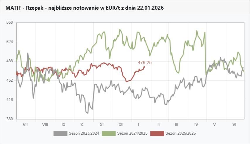 Według notowań rzepaku na MATIF rzepak jest za drogi. Nowe zbiory giełda wycenia o 20 euro taniej niż rzepak ze żniw 2025 r. To wszystko jest wyraźnym sygnałem dla ustawienia się do bieżącego handlu. Wszak już za chwilę pierwszym rzepakowym notowaniem będzie maj, a potem już tylko sierpień, a więc nowe zbiory.