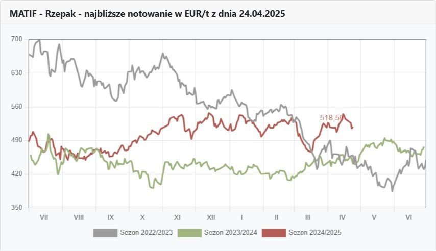 Ten okres podliczania się i wyliczeń, ile do końca sezonu jeszcze towaru potrzeba zbiega się z momentem kwitnienia rzepaku, gdy wszystkim, naprawdę wszystkim wydaje się, że tego rzepaku jest bezkresny ogrom. Tak bowiem działają na nasze receptory połacie żółtych pól. Jak cię widzą, tak cię piszą... i tak właśnie reagują zwykle też giełdy. Przez lata, w okresie kwitnienia rzepak zwykł na giełdach tanieć i tak się dzieje obecnie.