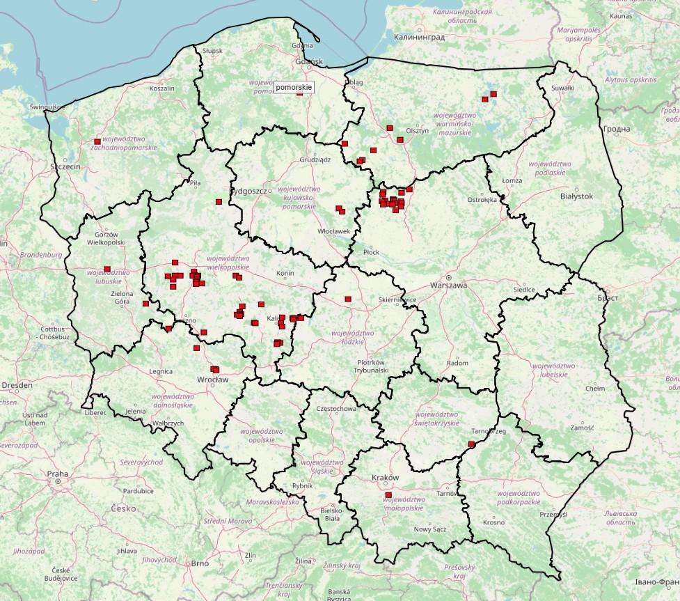 - 83. ognisko stwierdzono 28 kwietnia na fermie komercyjnej, gdzie utrzymywano 13323 indyków rzeźnych. Ferma zlokalizowana jest w województwie pomorskim, w powiecie starogardzkim, w gminie Skarszewy, w miejscowości Bolesławowo.