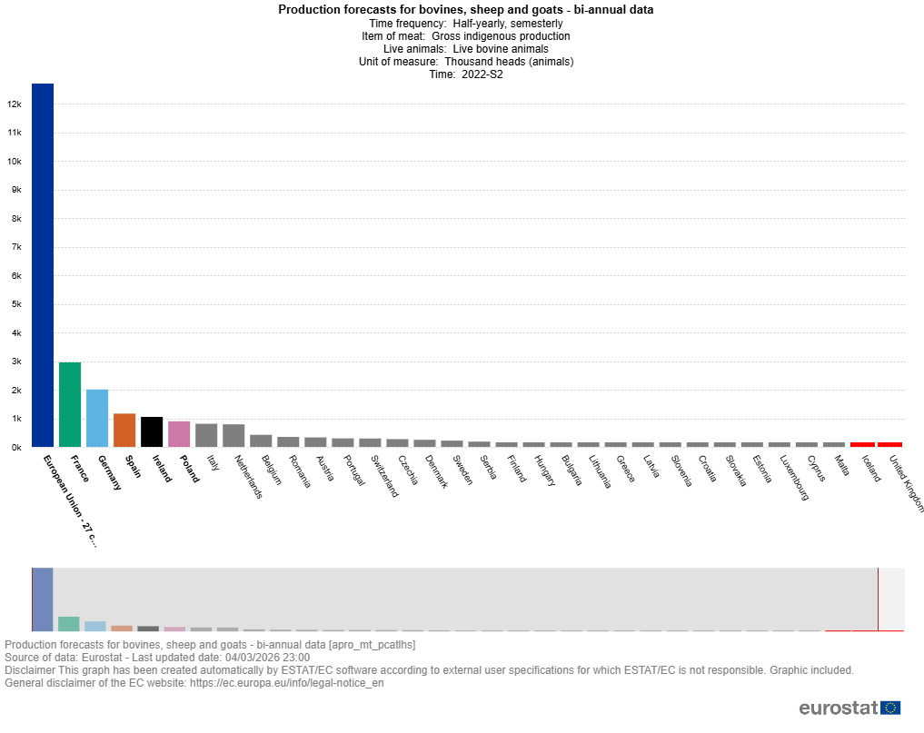 Z najnowszych prognoz Eurostatu wynika, że w 2026 r. w wielu krajach UE hodowcy będą utrzymywać mniej zwierząt niż rok wcześniej.