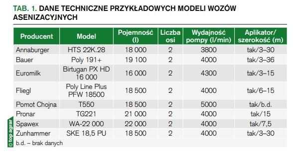 Coraz częściej wozy asenizacyjne kupowane są wraz z aplikatorami. Najpopularniejsze są węże wleczone, ograniczające straty azotu o 20–50% oraz aplikatory doglebowe, które mogą zmniejszyć te straty nawet o 90%. Inwestycja w zaawansowany technologicznie wóz asenizacyjny może szybko się zwrócić, ponieważ precyzyjne systemy czy zamontowane z tyłu aplikatory pozwalają w pełni wykorzystać potencjał nawozowy gnojowicy. Warto wspomnieć, że w ramach Planu Strategicznego dla Wspólnej Polityki Rolnej na lata 2023–2027, dla interwencji I.10.4 Inwestycje przyczyniające się do ochrony środowiska i klimatu, kosztem kwalifikowanym może być zakup wozu asenizacyjnego z aplikatorem. W dalszej części artykułu przedstawiamy przykładowe wozy asenizacyjne ze zbiornikami wykonanymi z tworzywa, dostępne na polskim rynku.