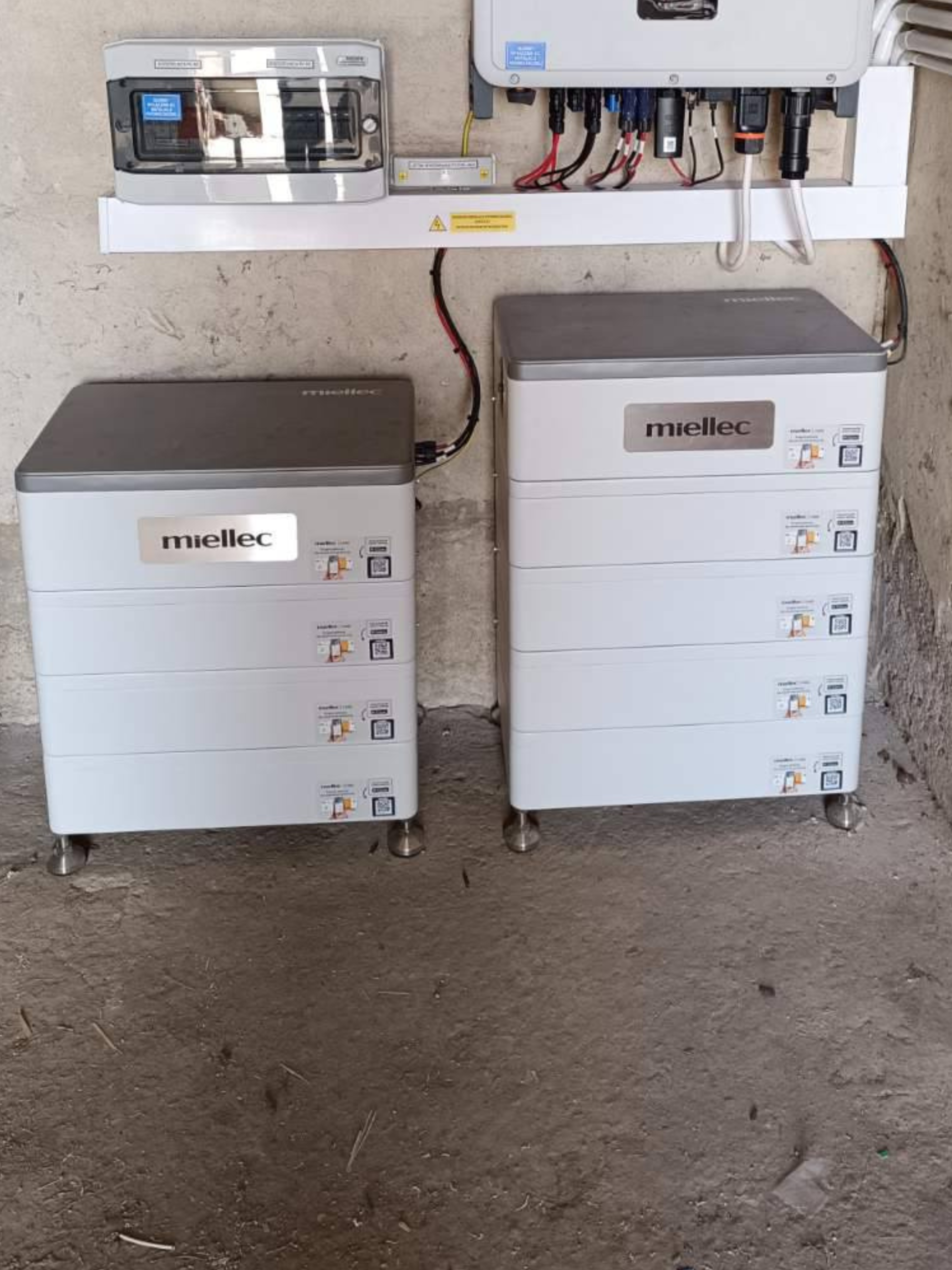 - 50 kWp: Falownik hybrydowy Deye/Growatt/Solis 50kW i 2 × bateria Miellec C & I Pro Air 61 61 kWh. Cena zestawu ok. 110 tys. zł netto + panele PV ok. 200 tys. zł.