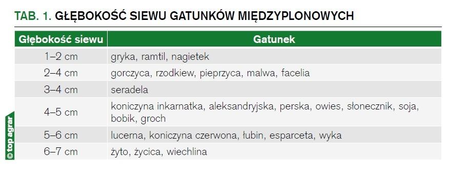 To dość istotna kwestia. Popularna facelia potrzebuje ok. 2 cm, ale pozostawiona na powierzchni nie powschodzi – nie lubi światła (tab. 1.). Na podobną głębokość siejemy np. rzodkiew czy gorczycę, głębiej na 4–5 cm bobowate grubonasienne, a drobnonasienne na głębokość 5–6 cm.